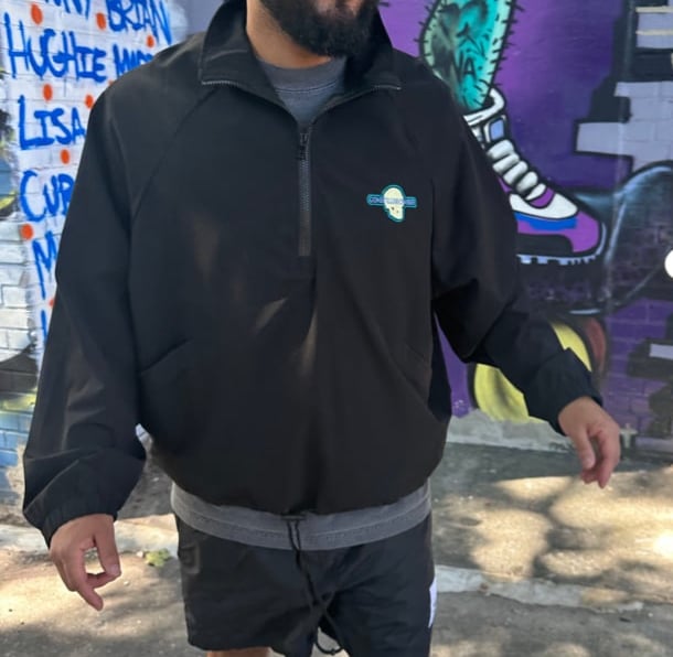 Black RACER FLAG GTD Quarter Zip Nylon Jacket with Mesh Interior with embroidered GTD chest pocket